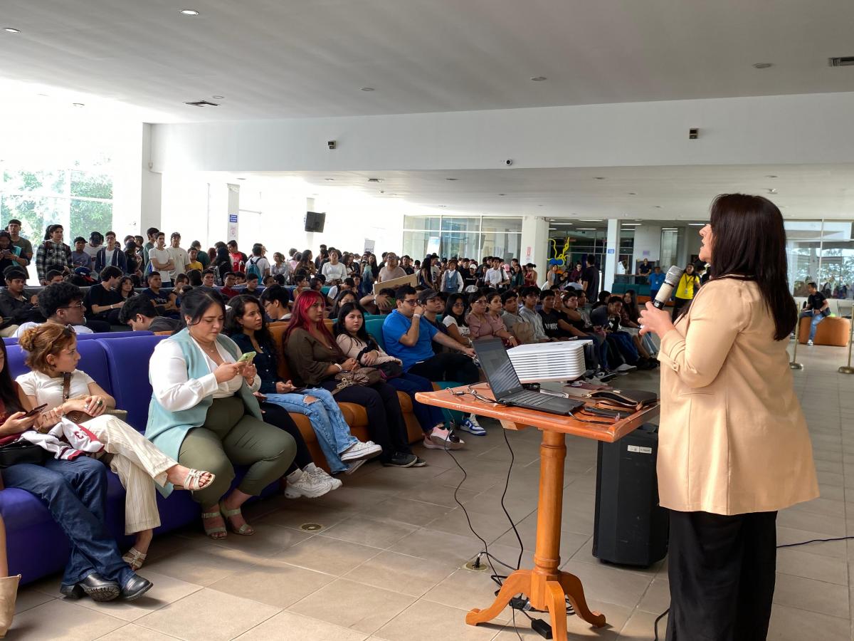Biblioteca fue parte de la programación, donde a través de su directora, Otilia Alejandro, conocieron de todos los recursos y servicios bibliotecarios que tienen a su disposición para el acompañamiento académico y de aprendizaje continuo. Así como su horario de atención y las diferentes áeas del centro.